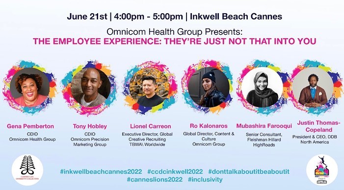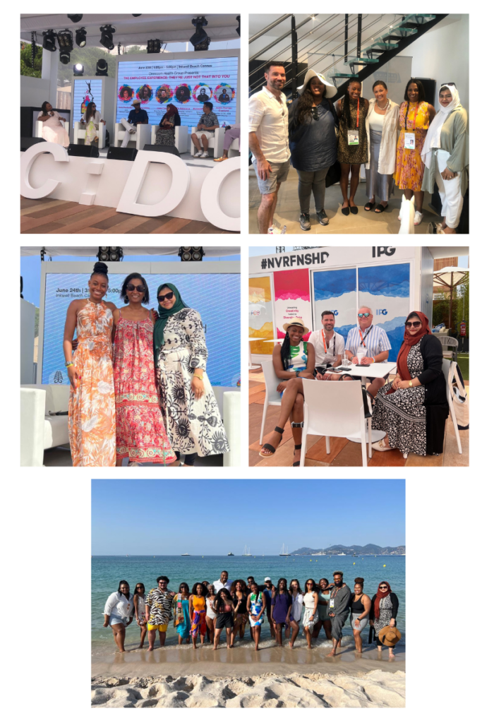 Throughout the week, Cannes Lions hosted a multitude of panel discussions and speeches on topics ranging from creativity and sustainability to talent-making and data technology. Weems and Farooqi had the opportunity to hear from industry leaders from tech, auto, consumer, sports/lifestyle and more. Some of the highest-impact sessions were held on Inkwell Beach and featured speakers including Hall of Fame CMO Bozoma Saint John, Founder of the Me Too movement Tarana Burke and Supermodel and Businesswoman Naomi Campbell. Farooqi also had the opportunity to speak about the black, indigenous and people of color (BIPOC) employee experience on a panel with fellow Omnicom colleagues, organized by Emily Graham, Omnicom’s chief equity and impact officer. Meanwhile Weems participated on a panel with Smith focused on how “Creativity Starts with Diversity.” You can watch it here.